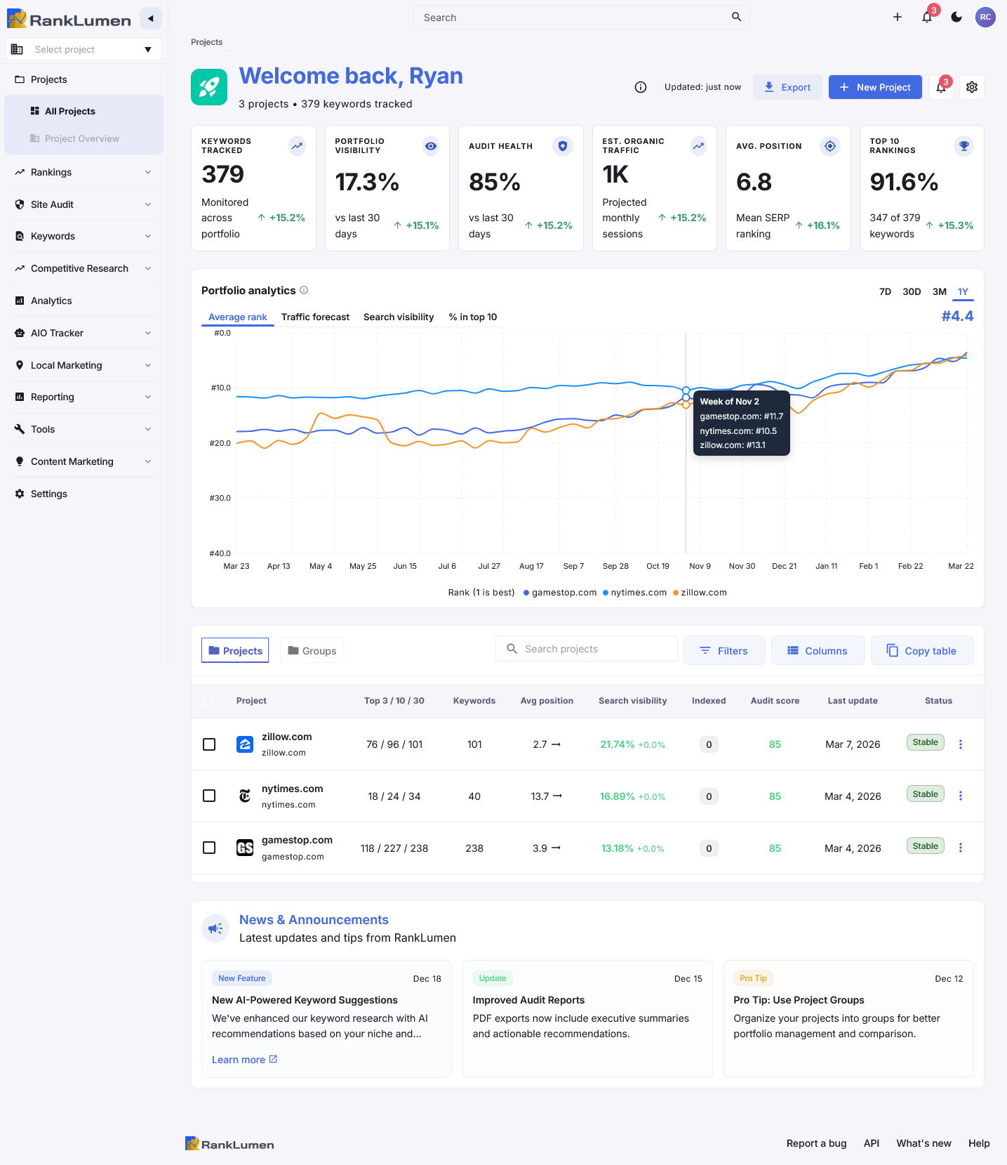 Finally, a tool that covers everything – from technical audits to local SEO. The user interface is also intuitive and fast.